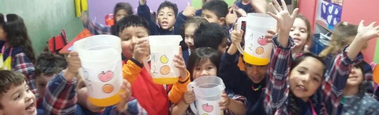 Los peques de sala fuscia trabajaron con vasos medidores para aprender las unidades.