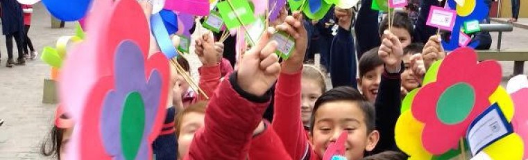 Los alumnos del nivel primario, salieron a darle la bienvenida a la primavera junto a nuestra comunidad regalando unas hermosas flores!